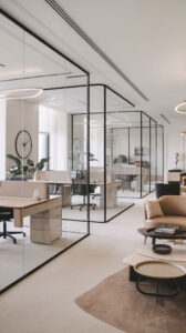 با حذف المان‌های غیرضروری، فضایی آرام و کاربردی ایجاد می‌شود که به تمرکز کارکنان کمک می‌کند.